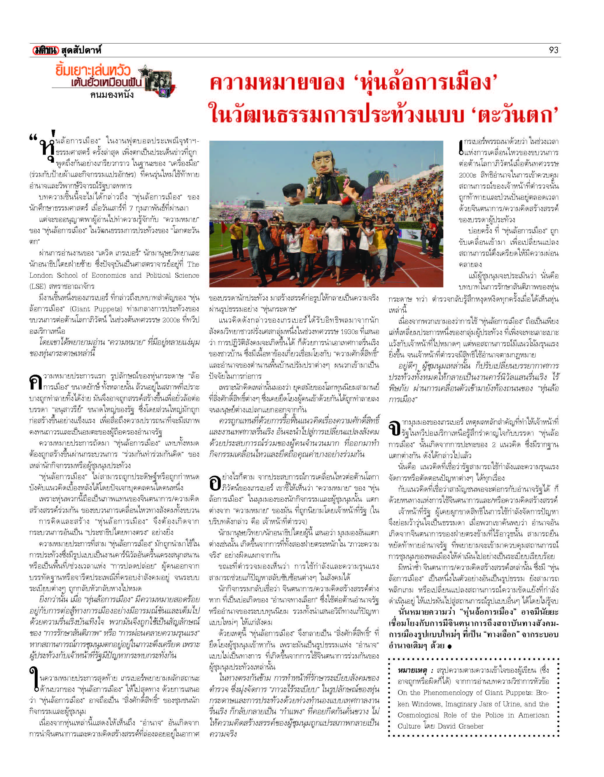 โดยเขาได้พยายามอ่าน “ความหมาย” ที่มีอยู่หลายแง่มุมของหุ่นกระดาษเหล่านี้