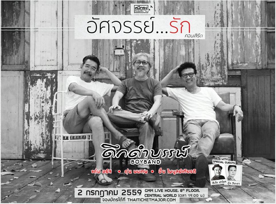 โดยคอนเสิร์ตใหญ่ของดึกดำบรรพ์ บอย แบนด์ จะมีขึ้นในวันที่ 2 กรกฎาคมนี้ ณ จีเอ็มเอ็ม ไลฟ์ เฮาส์ ห้างสรรพสินค้าเซ็นทรัล เวิลด์