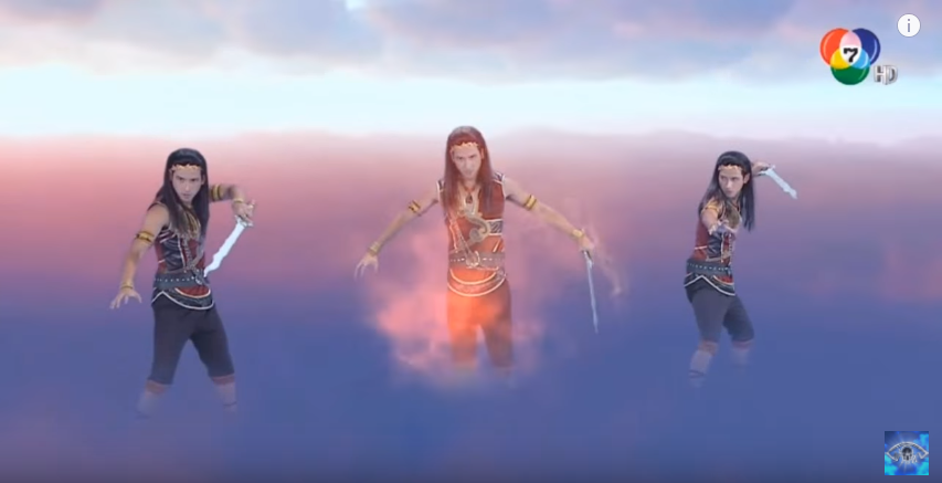 ปรากฏว่ามีจังหวะหนึ่ง (นาทีที่ 8.27 จนจบคลิปด้านบน) ที่ “สามศรี” แยกร่างตัวเองออกเป็น “สามร่าง” เพื่อเล่นงาน “พระราหู”