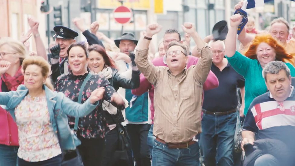 โดยได้รับความร่วมมือจากกลุ่มนักร้องประสานเสียงท้องถิ่น รวมถึงผู้คนในแถบนั้นอีกร่วม 300 ชีวิต